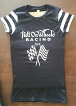 100 % cotton Tee shirt in red white blue black and gold w stripped sleeves , sizes sm to xxl